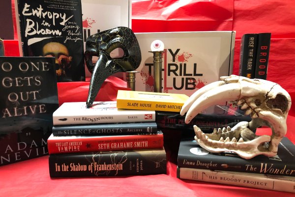 Monthly Subscription Box Name: My Thrill Club delivers the best in crime, mystery, thriller, espionage, and horror. You tell us your favorite genre and we will ship two new hardcovers plus an eBook for reading on the go right to your door. We also include surprises from time to ti