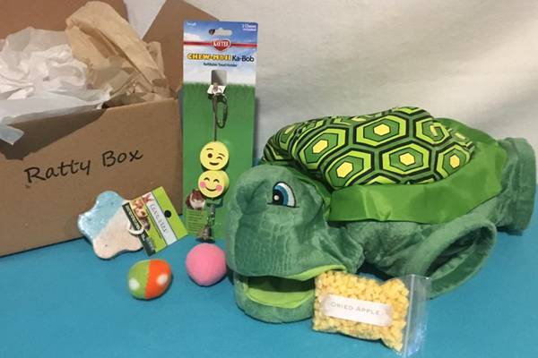 Monthly Subscription Box Name: Ratty Box is a monthly subscription service that delivers ratty goodies to your door! Ratty Box contains 5-6 treats, chews, cage accessories, toys and other goodies that your rats are sure to love There are never any nasty ingredients such as Timothy